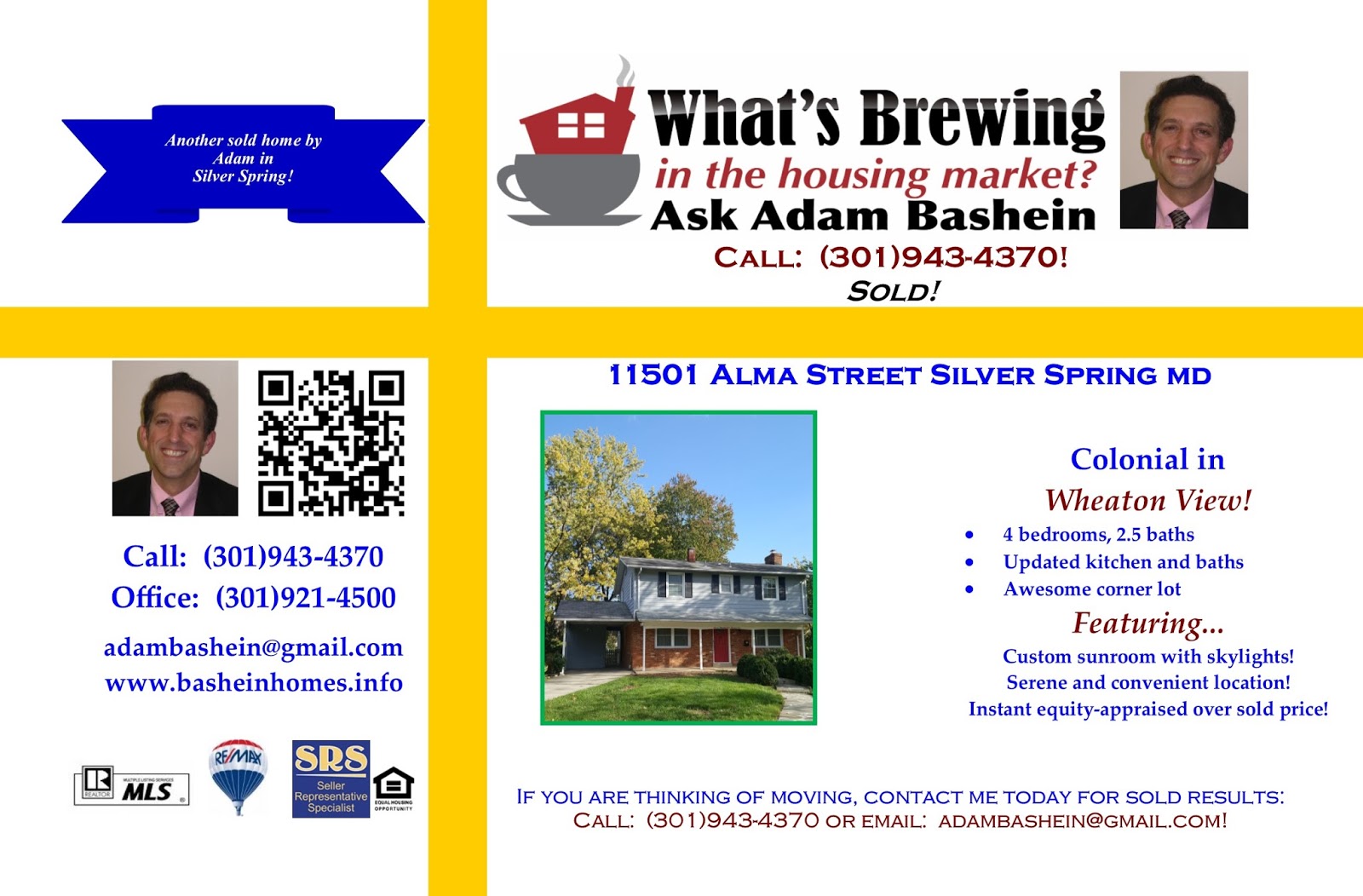 If you are ever considering refinancing and want to talk about home sales that might help your home appraise, I am happy to schedule an appointment to meet you at your house. Call me: (301)943-4370 or Email me: adambashein@gmail.com.